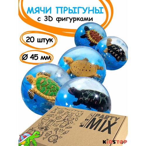 Мячи-прыгуны с 3D фигурками черепашек внутри, 20 штук