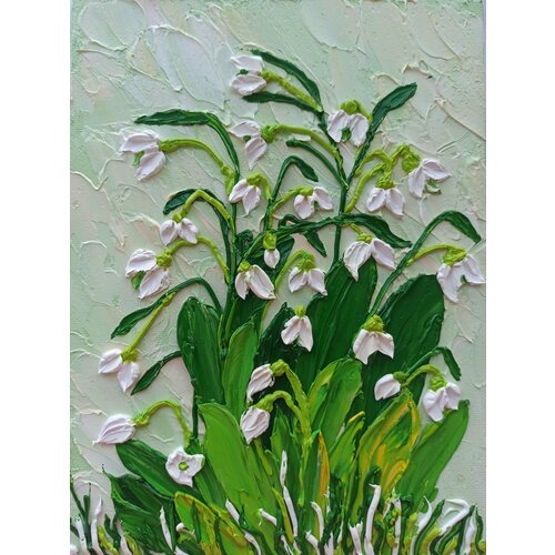 Картина маслом на холсте "Подснежники " 20*15/ручная работа