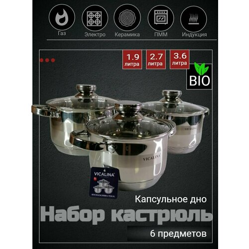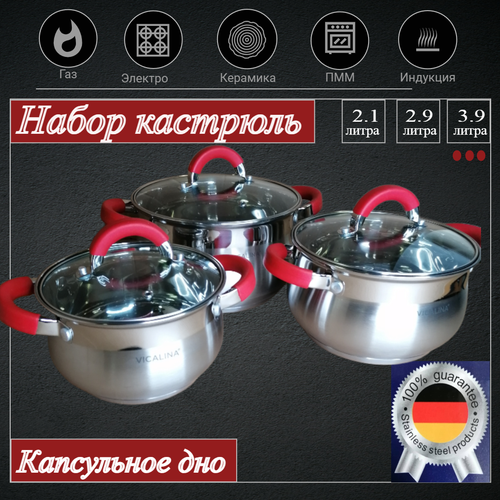 Набор кастрюль Vicalina, Сталь, Металл, 1,9 л, 2,7 л, 3,6 л