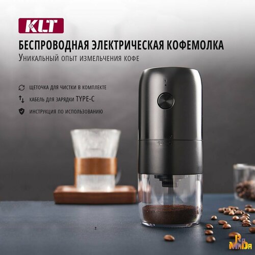 Электрическая мельница KLT для специй, с подставкой и подсветкой,2 штуки, черная