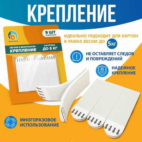 Крепление для картин, набор самоклеящихся застежек для картин, крепится без инструментов, 8 штук, до 5 кг