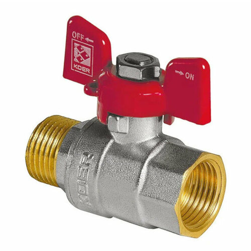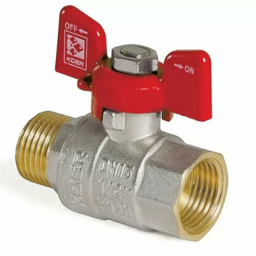 Кран шаровой латунный 1/2" дюйма KOER (Чехия) DN15 вн/нар ручка бабочка