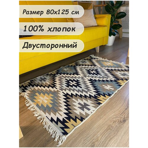 Ковер комнатный на пол / ковер турецкий / килим / ковровая дорожка / ковер безворсовый / ковер двусторонний, 80х125 см
