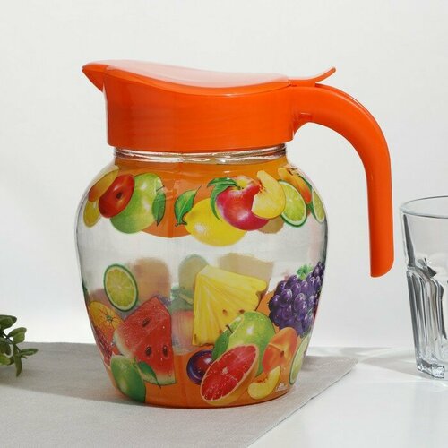 Кувшин «Фруктовое ассорти», стеклянный, 1.5 л, с оранжевой крышкой