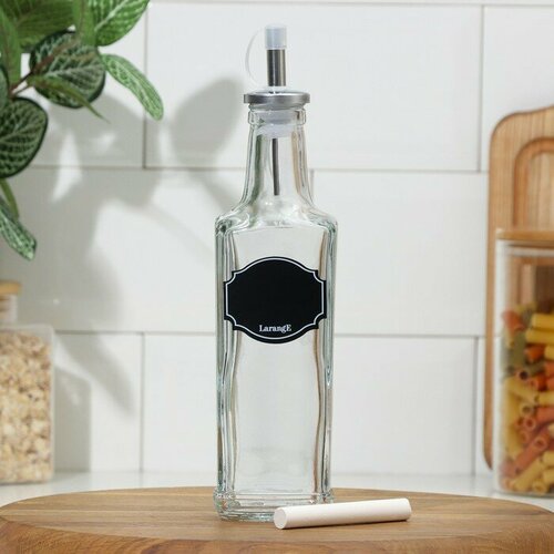 Бутылка с металлическим дозатором для масла и соусов «Меловой дизайн», стеклянная, 250 мл, с мелком для маркировки