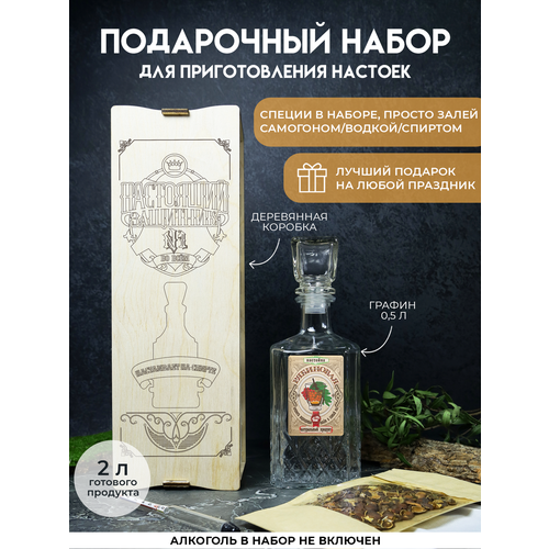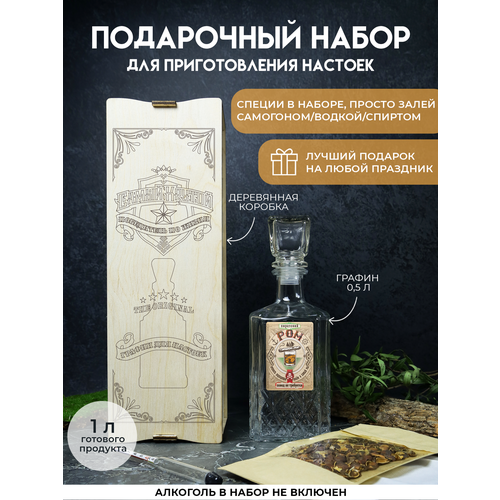 Наб для пригот настойки "вискарь" со специями в дер подар коробе с гравировкой настоящий защитник чёрн