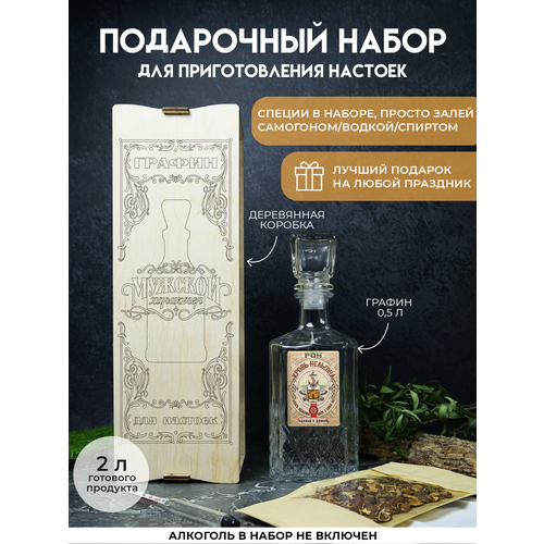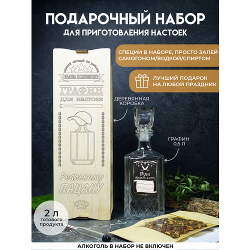 Наб для пригот настойки РОМ "Кровь Нельсона" со специями в дер подар коробе с гравировкой реальному пацану