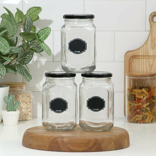 LARANGE Набор банок для хранения «Меловой дизайн», стеклянный, 900 мл, 3 шт, с мелком для маркировки, на деревянной подставке