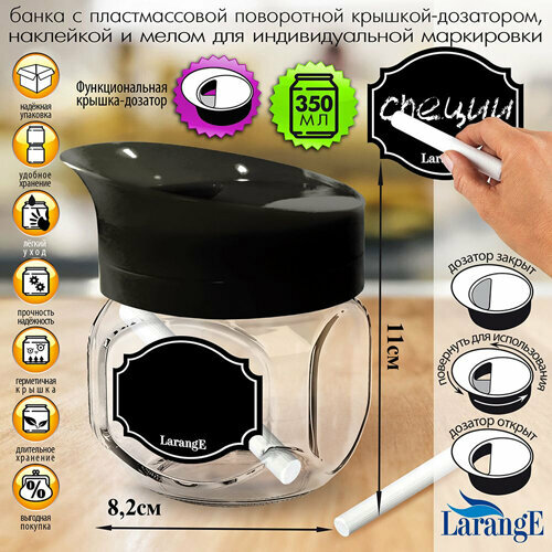 Банка для хран. стекл. 0,35л ТО82 с пласт. поворот чёрн крышк, серия "Меловой дизайн" 00675-00872 LarangE