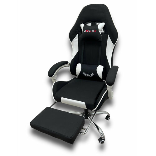 Игровое Компьютерное Кресло, Цвет Черный, Тканевое с Подставкой для ног