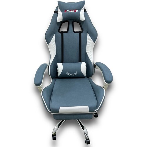Игровое Компьютерное Кресло, Цвет Синий, Тканевое с Подставкой для ног