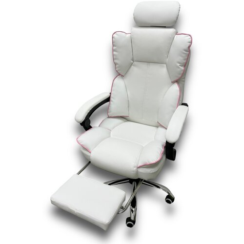 Компьютерное Кресло, Кресло руководителя, Регулируемый подголовник, с подставкой для ног, цвет Белый