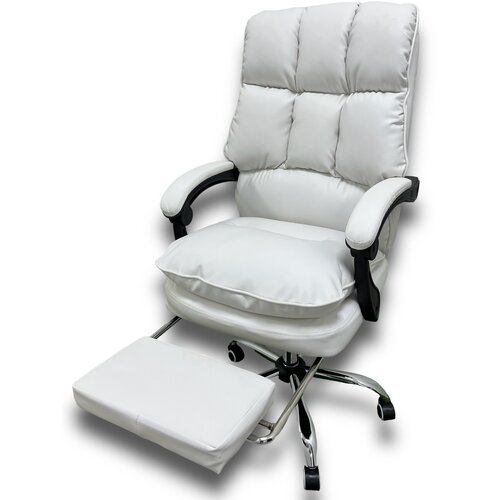 Кресло Руководителя, Мягкое компьютерное кресло, с Подставкой для ног, цвет Белый