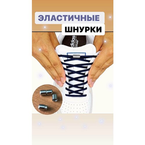 Шнурки эластичные с фиксатором для обуви без завязок для кроссовок / кед / ботинок / темно синии