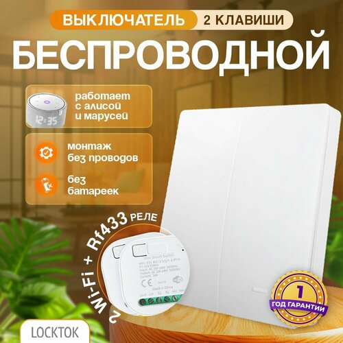 Беспроводной двухклавишный выключатель LOCKTOK с Wi-Fi и RF433мГц.