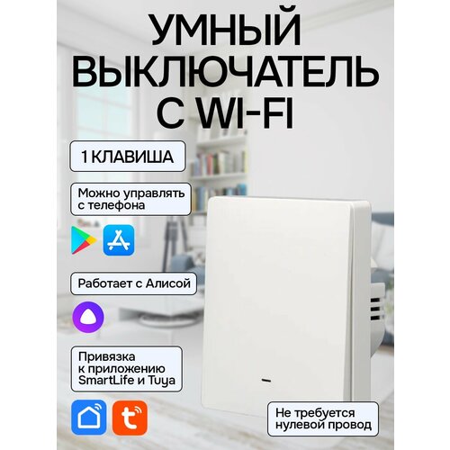 Умный выключатель с Алисой Wi-Fi, 1 клавиша.