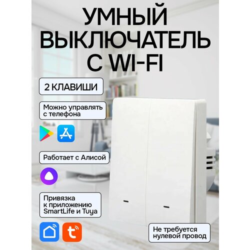Умный выключатель с Алисой Wi-Fi, 2 клавиши.