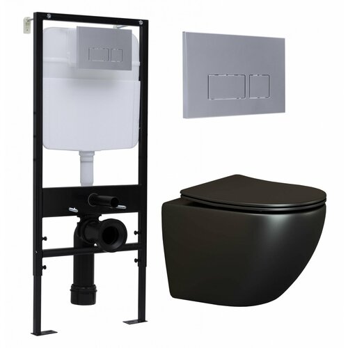 Комплект 3 в 1 инсталляция Logan H1067-1170 297674 + Подвесной унитаз WeltWasser Gelbach 004 MT-BL + кнопка хром матовый