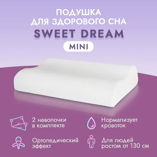 Анатомическая подушка для сна двух волновая LoliDream Sweet Dream Mini + 2 сменные чехла наволочки в комплекте