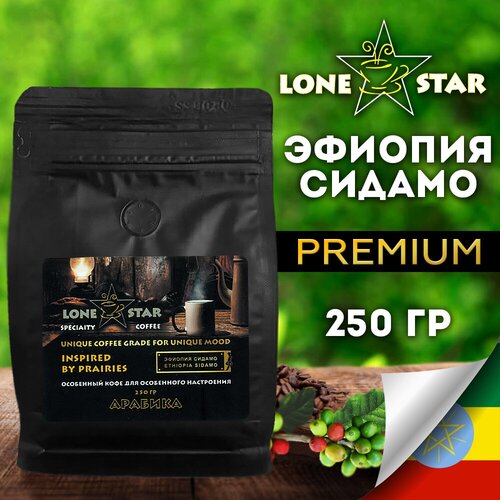 LONE STAR/Кофе в зернах 250гр. Эфиопия Сидамо, Хороший кофе свежей обжарки, 100% натуральный/высший сорт/Арабика/свежеобжаренный /кофе для кофемашины