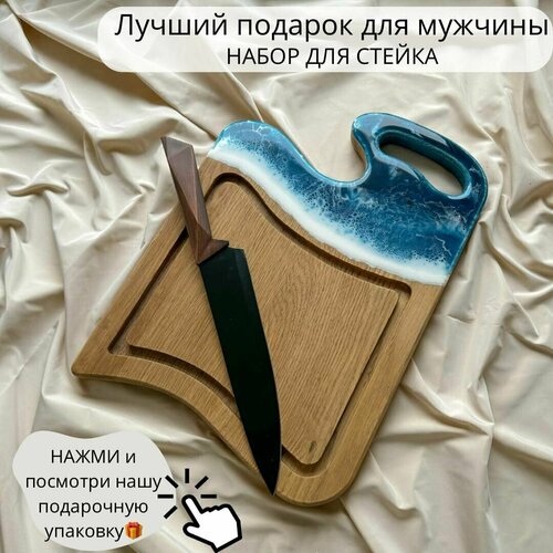 Подарочный набор для мужчины LONET в комплекте доска из дуба и нож для стейка, оригинальный подарок мужчине, начальнику, шефу