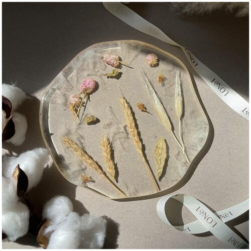 Тарелка-поднос с сухоцветами под украшения, духи или для сервировки