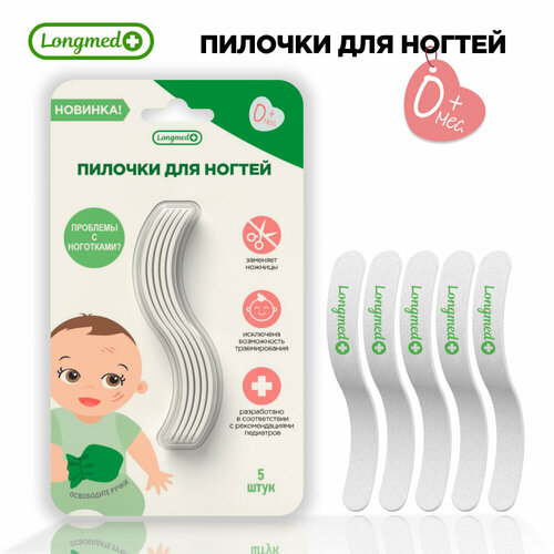 Детские пилочки для ногтей "Longmed+", 1 уп/5 шт.