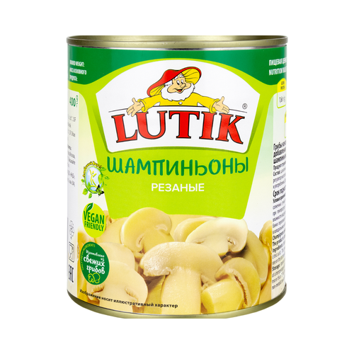 Шампиньоны резаные LUTIK консервированные без добавления уксусной кислоты, 850 мл