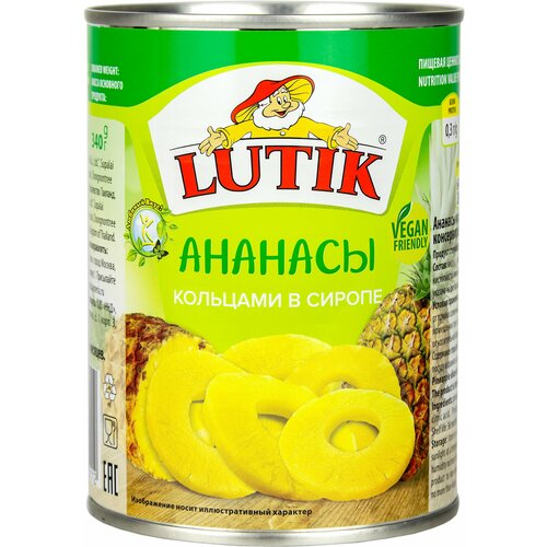 Ананасы кольцами Lutik консервированные в сиропе, 580 мл