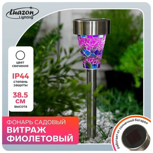 Садовый светильник на солнечной батарее «Фиолетовый витраж», 7 × 38.5 × 7 см, 1 LED, свечение белое (1шт.)