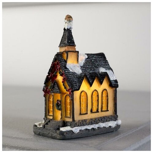 Светодиодная фигура «Дом с башней» 4.5× 8.5 × 6 см, керамика, батарейки AG13х2, свечение тёплое белое (1шт.)
