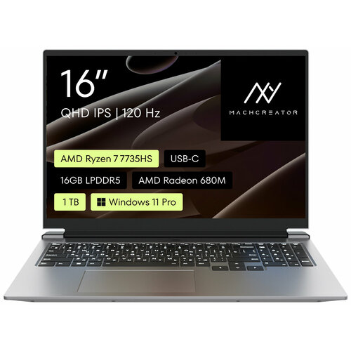 Ноутбук Machcreator Prime X16/16"/Ryzen 5 7535HS/16/1TB/Win/Grey Metallic (JB0C19001RU)