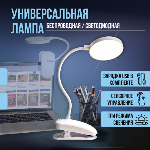 Лампа настольная светодиодная на прищепке беспроводная для школьника, компьютера, чтения, маникюра