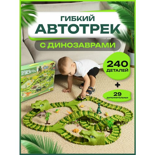 Гоночный гибкий автотрек динозавр с машинками 269 деталей подарок мальчику
