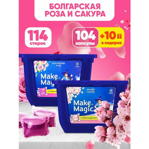 Моющее средство для стирки белья в гелевых капсулах Make Magic с ароматом сакуры 57 штук