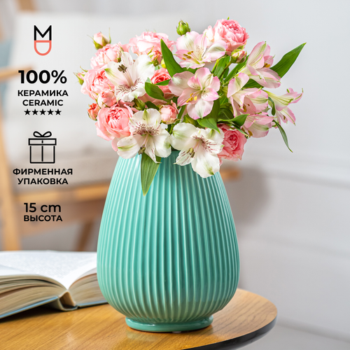 Керамическая ваза Mandarin Decor для цветов и сухоцветов "Сиена Мятная", 800 мл