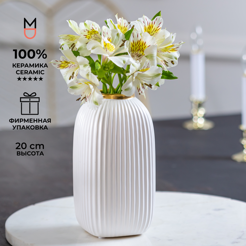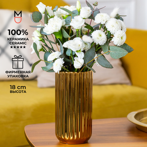 Керамическая ваза Mandarin Decor для цветов и сухоцветов "Верона Золото", 2000 мл