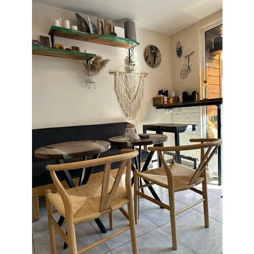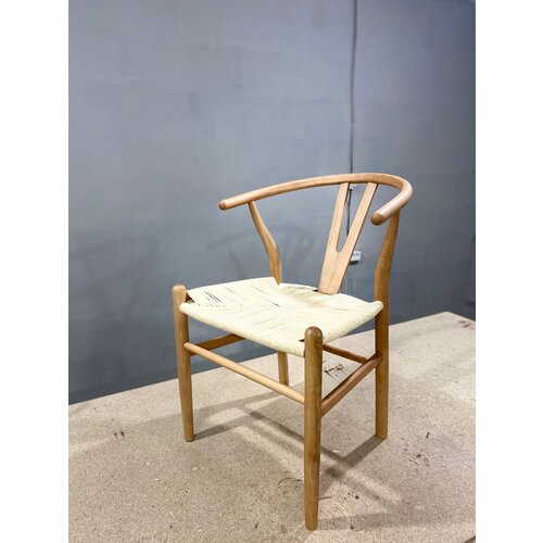 Стул дизайнерский Wishbone массив дерева бук, цвет каркаса : натуральное дерево с молочным сиденьем из датского шнура