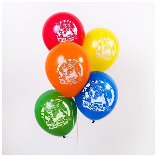 Воздушные шары «С Днем Рождения», Человек-паук, 5 шт, 12" (1шт.)