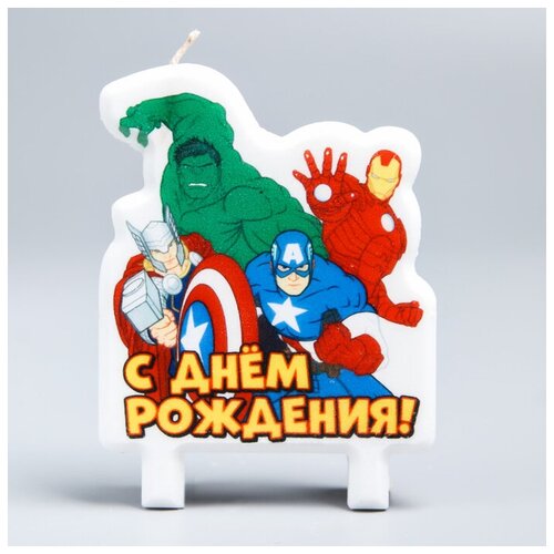Свеча в торт «С Днём Рождения!», Мстители: Железный человек, Тор, Халк, Капитан Америка, 75 х 100 мм (1шт.)