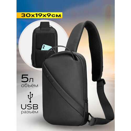 Рюкзак мужской городской однолямочный 5л для планшета 11" Mark Ryden из эко кожи, водонепроницаемый, с USB зарядкой, для взрослых и подростков
