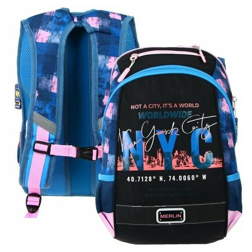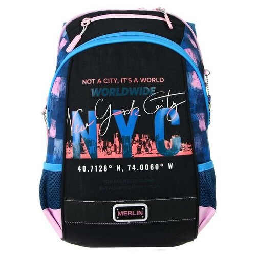 Рюкзак молодежный 43 х 29 х 15 см, эргономичная спинка, Merlin GL2020, NYC, чёрный/синий/розовый 21-GL2020-2
