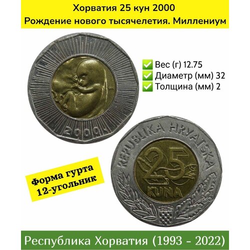 Хорватия 25 кун 2000 Рождение нового тысячелетия. Миллениум