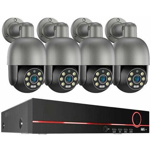 Цифровой IP POE комплект видеонаблюдения на 4 PTZ камеры 8Mp со звуком Millenium Tech 8046P PTZ
