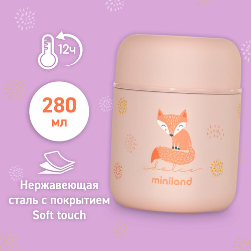 Детский термос для еды и жидкостей Miniland Thermy Dolce Mini 280 мл, розовый/лисенок