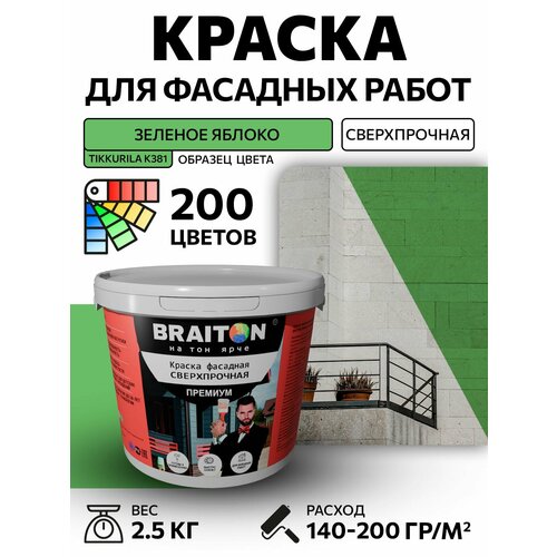 Краска ВД фасадная BRAITON Премиум Сверхпрочная 2,5 кг. Цвет Зеленое яблоко (Tikkurila K 381)