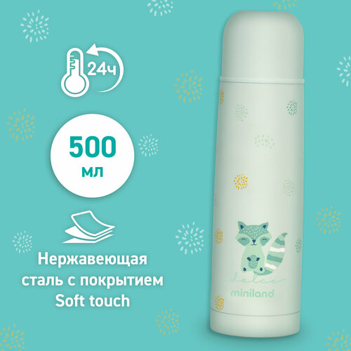 Детский термос для жидкостей Miniland Thermy Dolce 500 мл, бирюзовый/енот