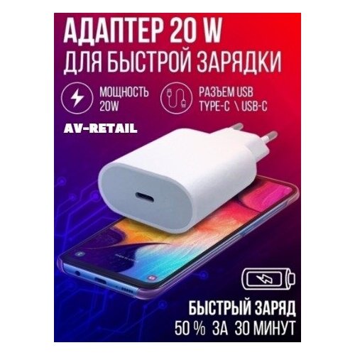 AV-Retail / Адаптер питания с разъемом Type-C / USB-C мощностью 20 Вт / Блок питания / Быстрая зарядка