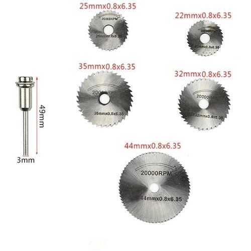 Набор кругов отрезных для граверов и бормашин 6 насадок и 2 адаптер 3.2 мм