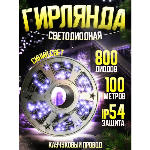 Гирлянда уличная 100 м каучуковый провод/цвет холодный/IP54/800 диодов